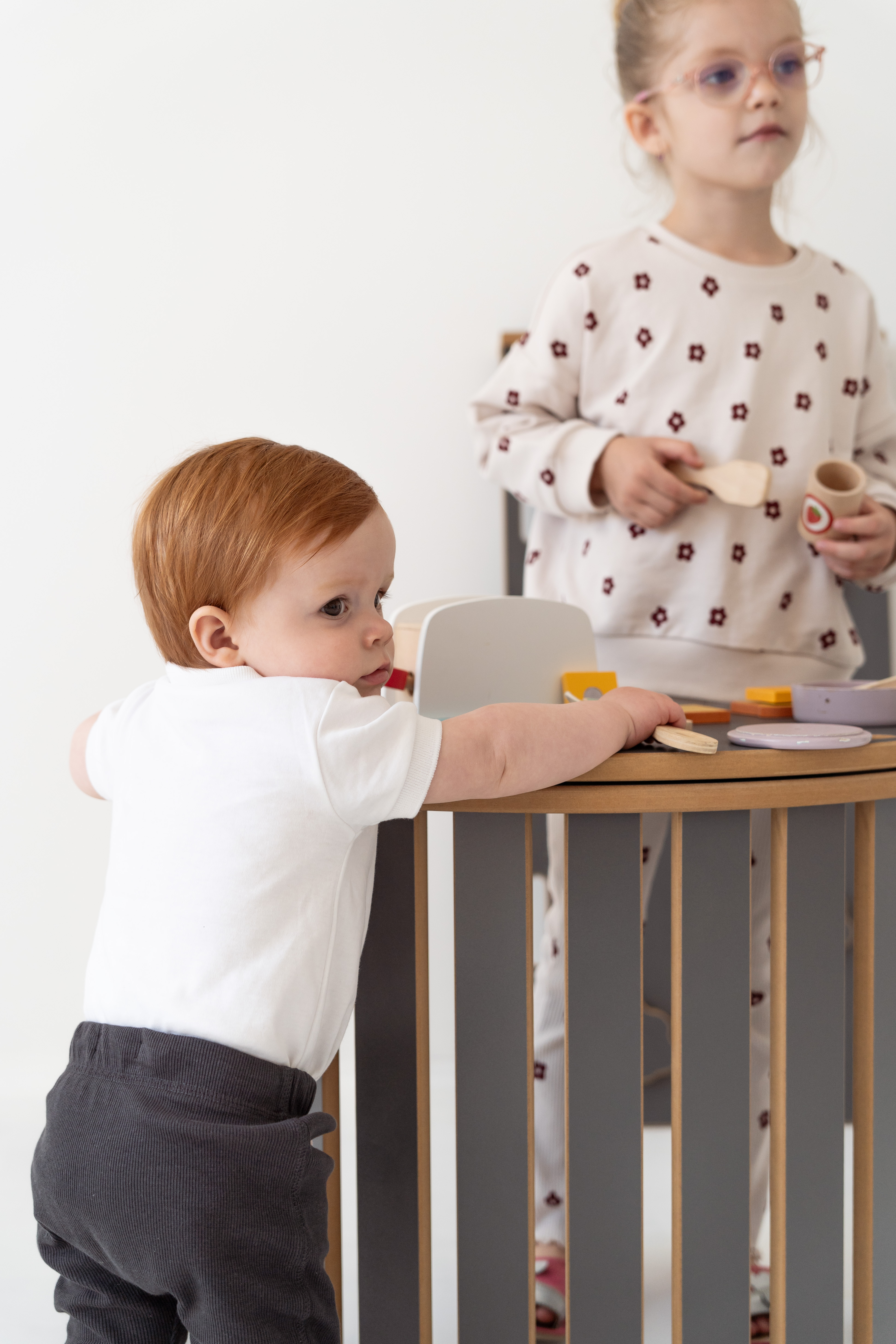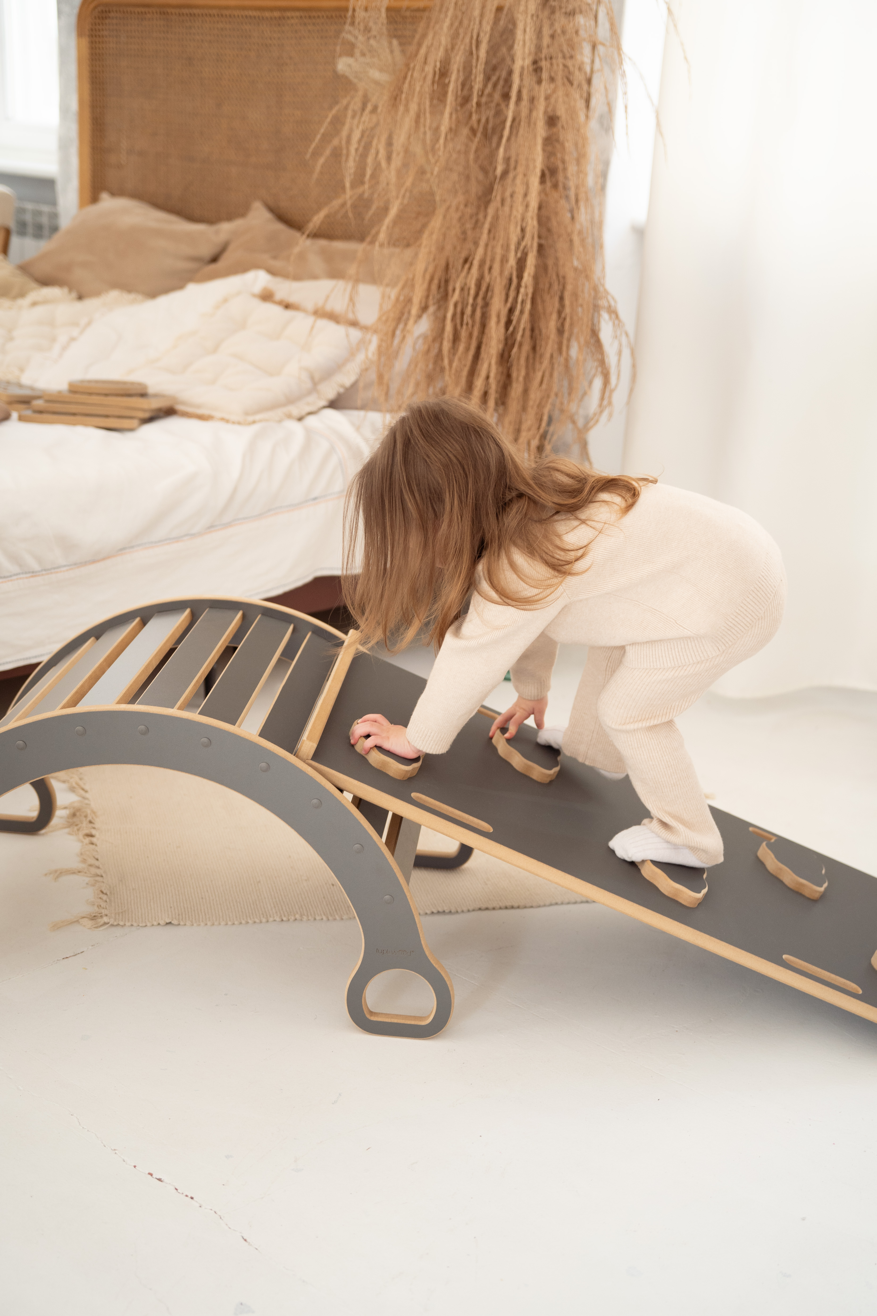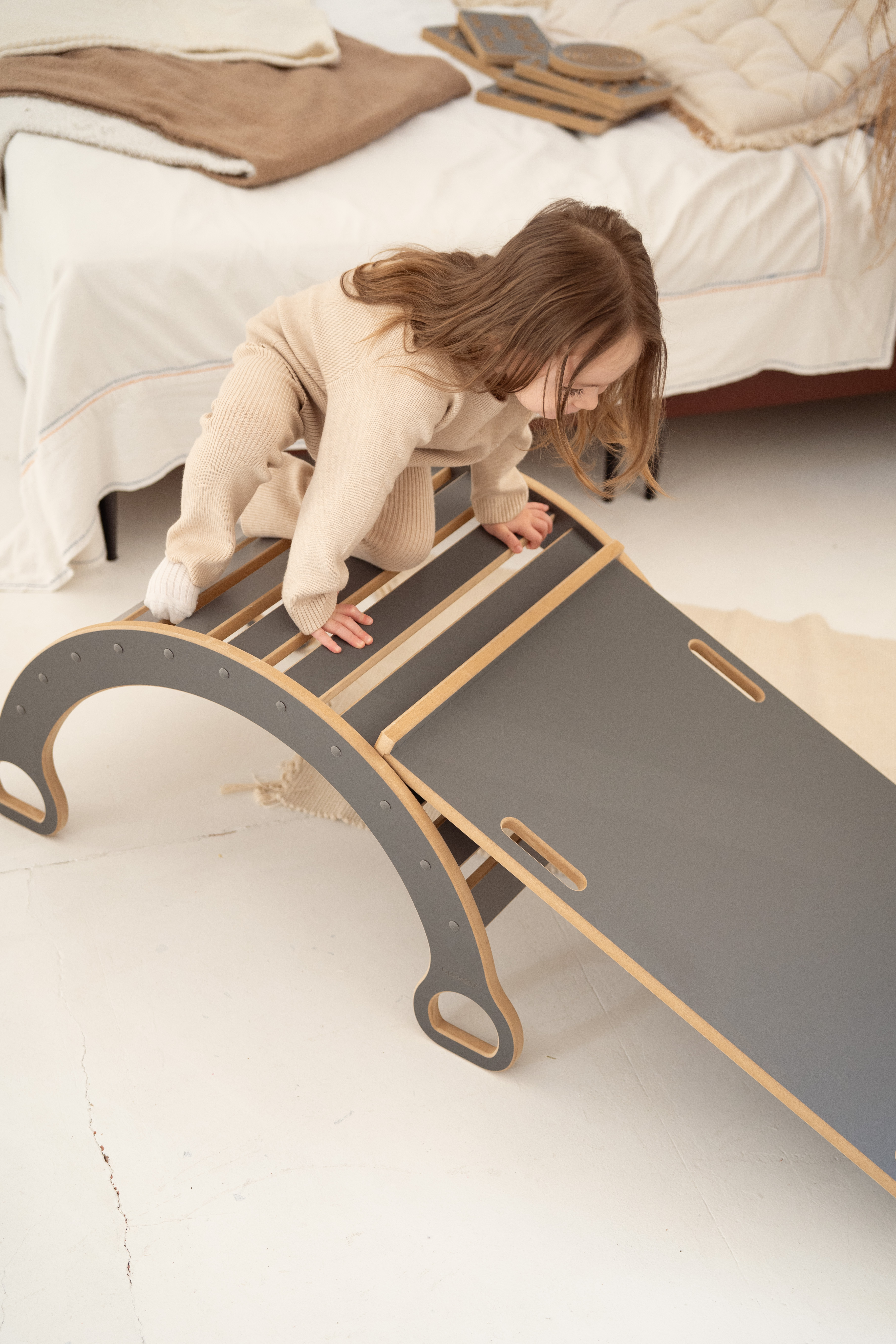 La balancelle est un jouet en bois multifonctionnel inspiré de la pédagogie Montessori, qui durera des années – voire des générations ! Elle offre de nombreuses possibilités d’utilisation, et seule notre imagination nous limite, une ressource dont les enfants ne manquent pas. Jouer avec la balancelle favorise le développement de la motricité globale, de l’équilibre, stimule le sens de la proprioception et la coordination œil-main.
