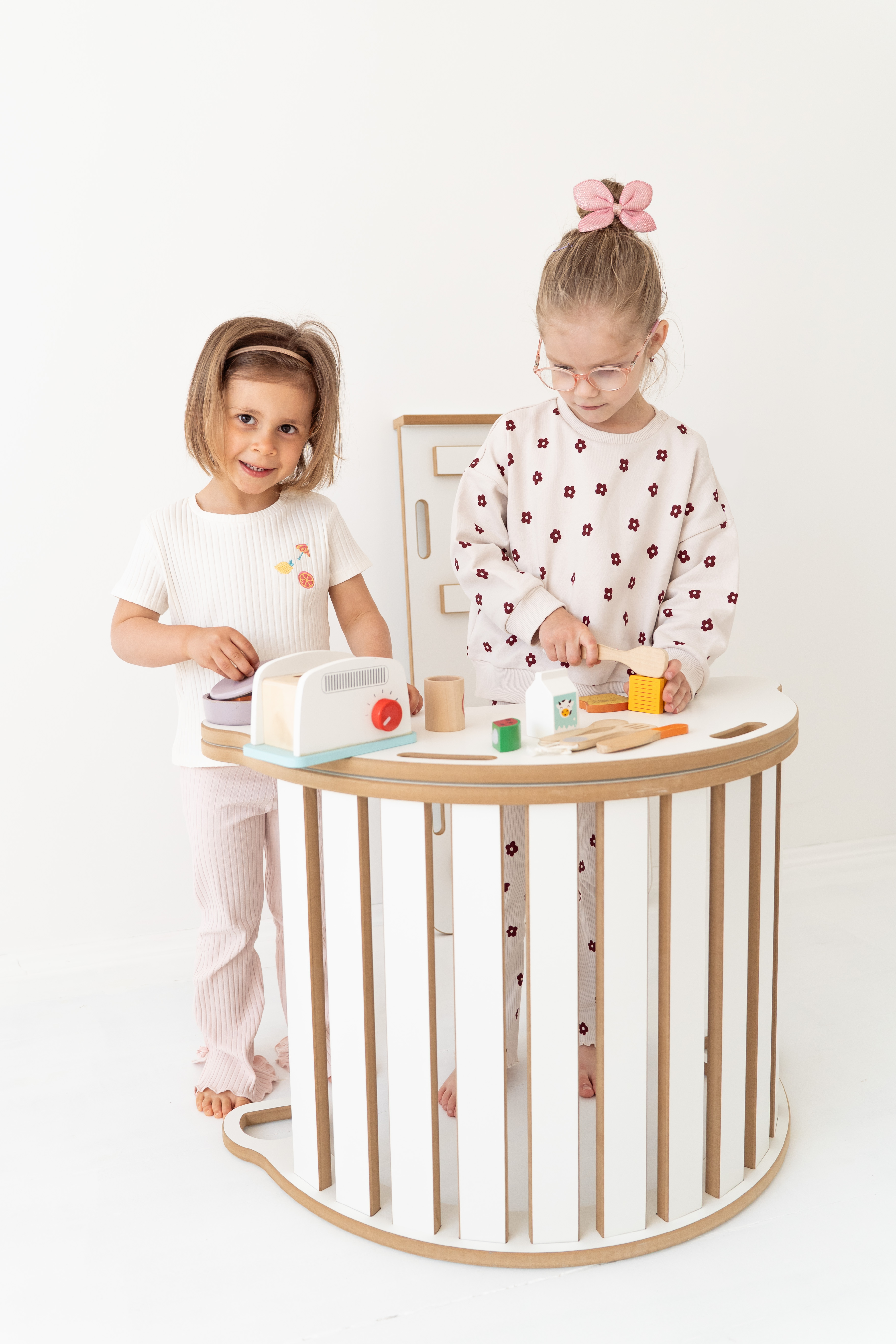 La balancelle est un jouet en bois multifonctionnel inspiré de la pédagogie Montessori, qui durera des années – voire des générations ! Elle offre de nombreuses possibilités d’utilisation, et seule notre imagination nous limite, une ressource dont les enfants ne manquent pas. Jouer avec la balancelle favorise le développement de la motricité globale, de l’équilibre, stimule le sens de la proprioception et la coordination œil-main.