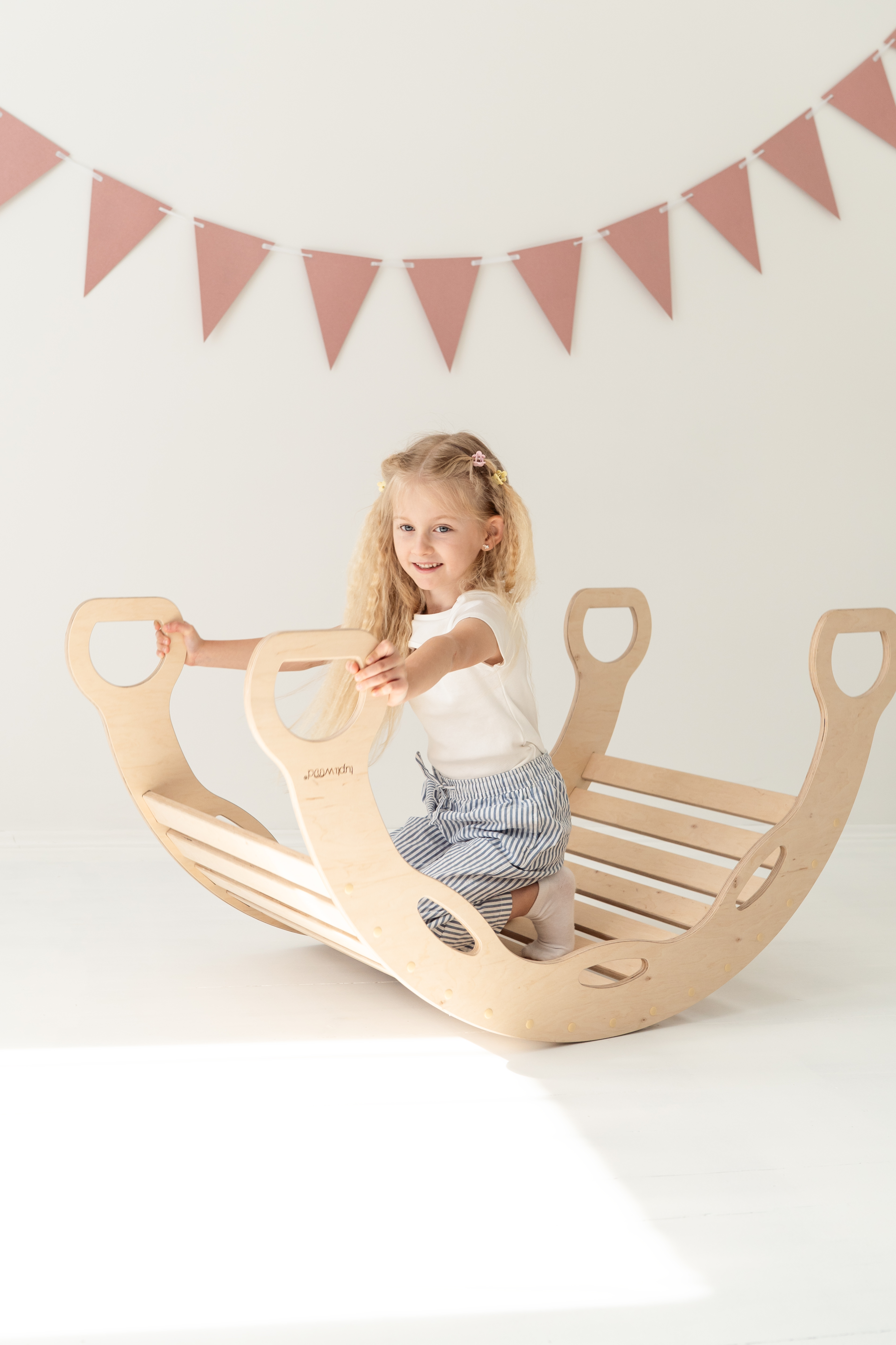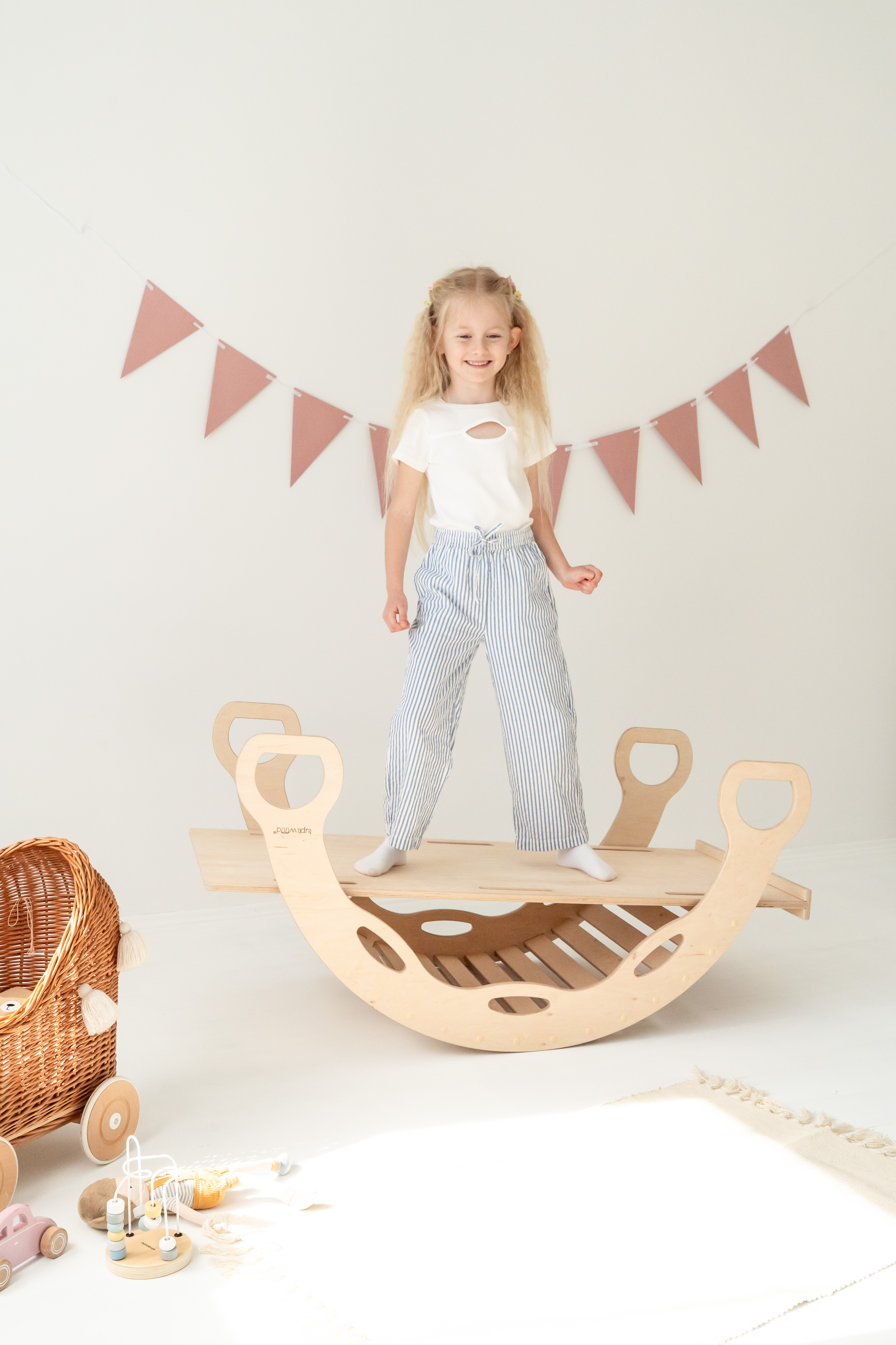 Le rocking-chair est un jouet en bois multifonction inspiré de la pédagogie Montessori, conçu pour durer des années – voire des générations !