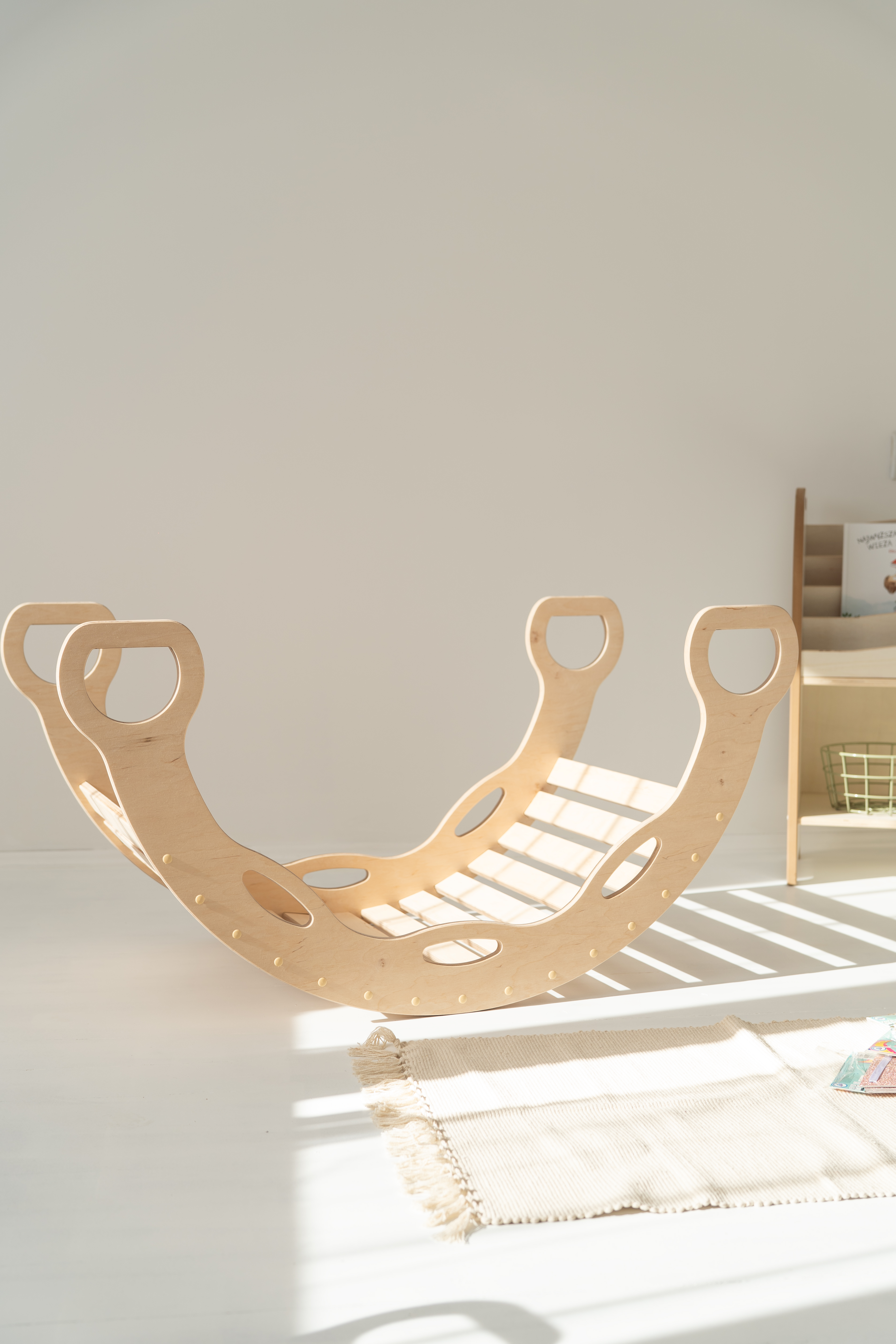 – Mur d’escalade/toboggan 2-en-1 : il est possible d’installer deux rampes de chaque côté du rocking-chair – d’un côté l’enfant grimpe, de l’autre il glisse ! (disponible dans la section Accessoires)