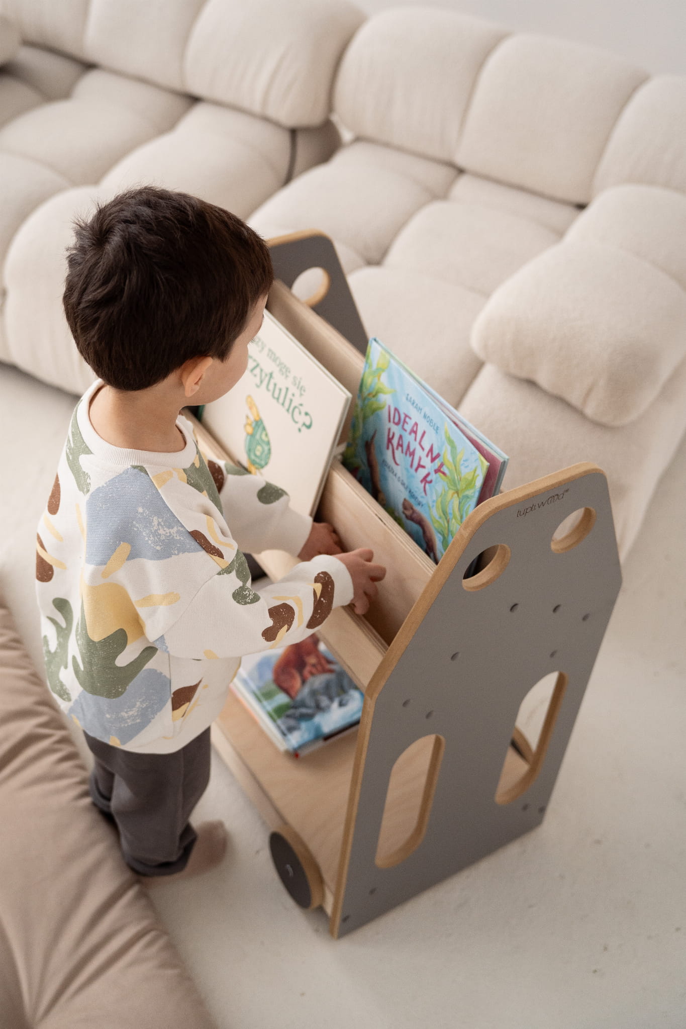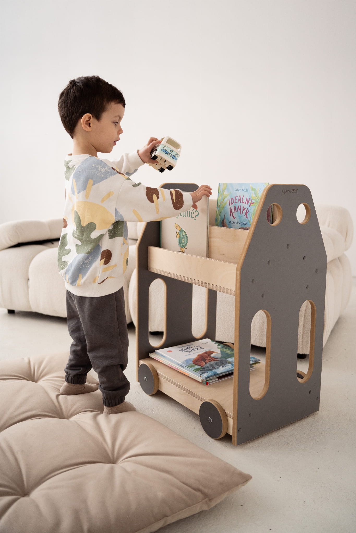 VOITURE - bibliothèque/étagère Montessori - gris